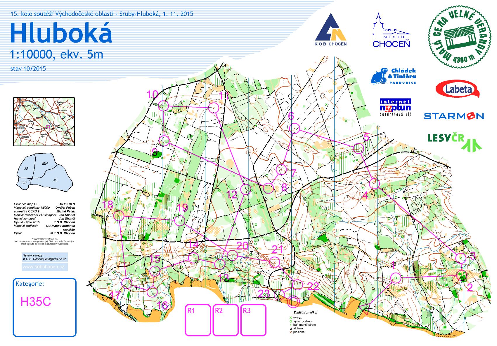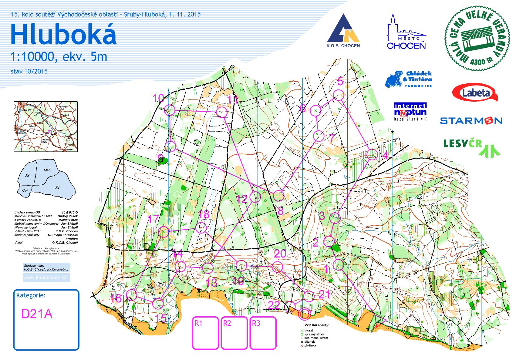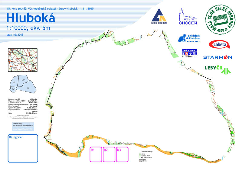 Prostorem závodu je část lesního komplexu táhnoucího se od Chocně až k Hradci Králové, konkrétně oblast severně od obcí Sruby a Dobříkov. Les zde je převážně jehličnatý, porostově velmi rozmanitý s hustou sítí cest. Jižní část prostoru je svah s detaily, prameništi s celkovým převýšením do 50 m. Severní část je rovinatá.