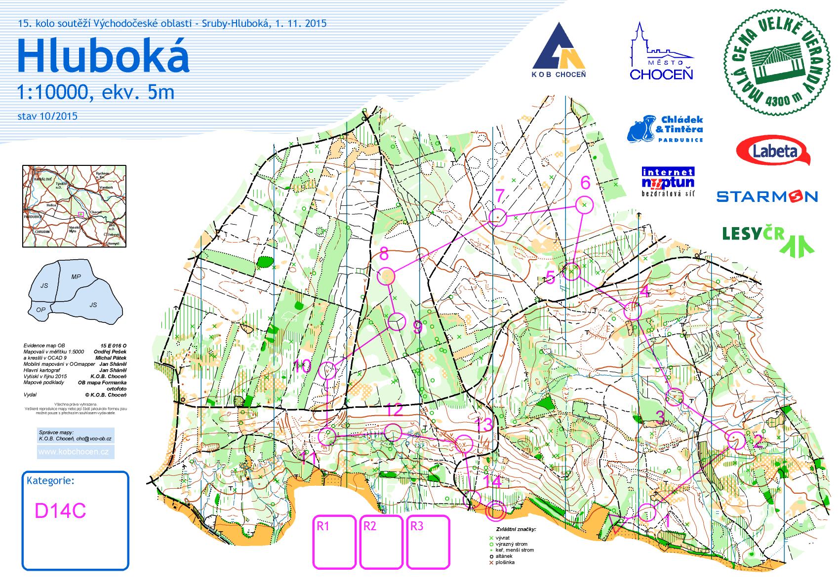 Mapu jsme připravili v souladu s mapovým klíčem ISOM 2000. O mapování nové části se podělili Ondra Pešek (0,22 km²) a Honza Sháněl (0,55 km²). Zbývající část prostoru prošla kompletní revizí, na které se podíleli Honza Sháněl a Michal Pátek.